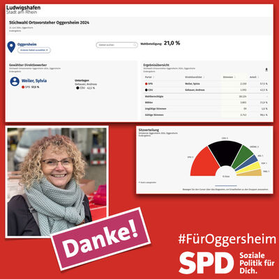 für die erneute Wahl als Ortsvorsteherin von Oggersheim sowie in den Stadtrat darf ich mich bei allen Wählerinnen und Wählern, die mir und der SPD ihr Vertrauen geschenkt haben, herzlich bedanken. Ich darf Ihnen versichern, ich werde gemäß meiner Zielsetzung, für alle Bürgerinnen und Bürger im Rahmen der mir gegebenen Möglichkeiten im Interesse von Oggersheim wirken...